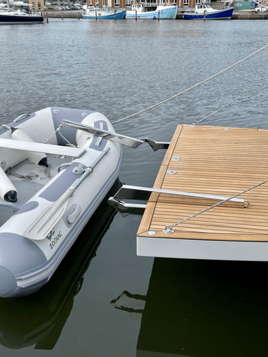 Integrated transom davits with bathing platform